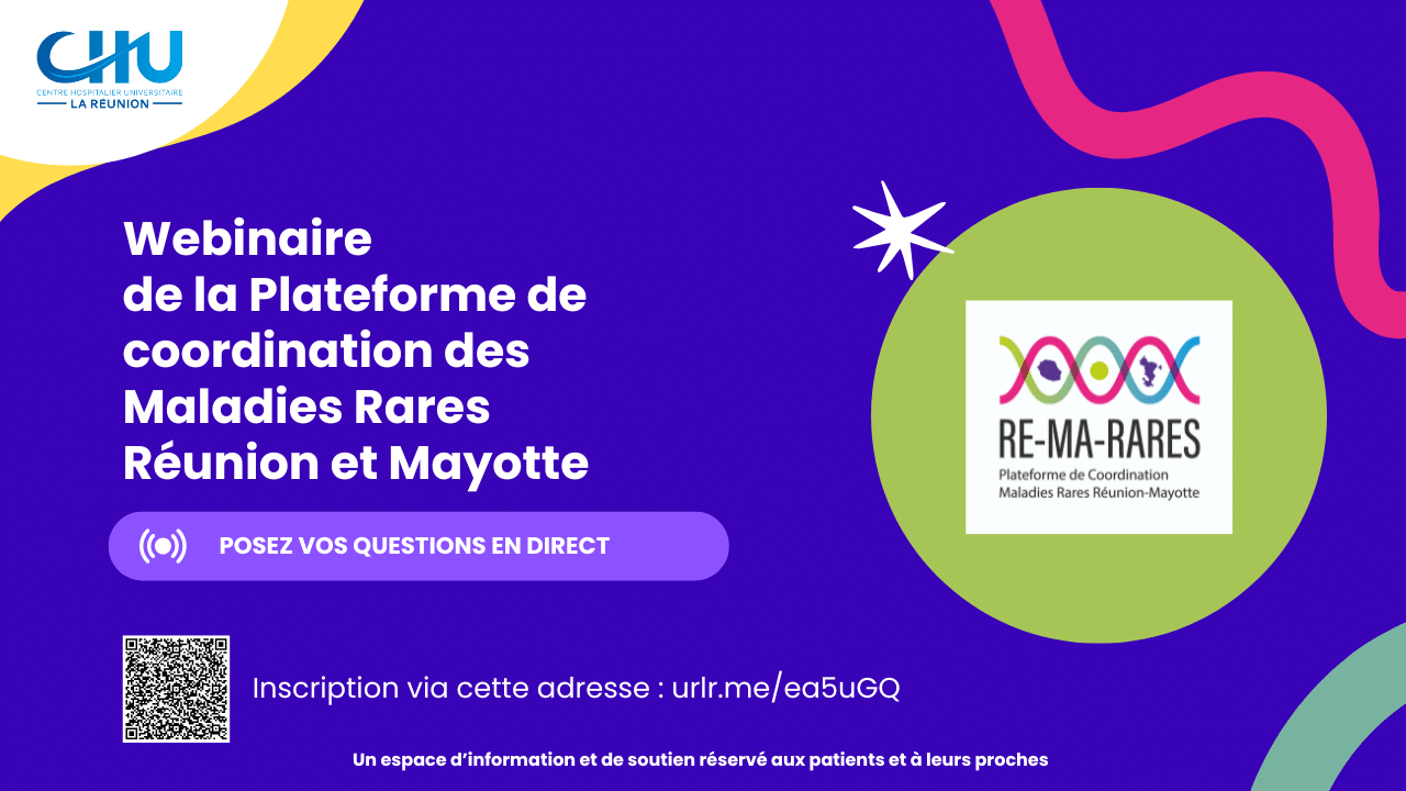 La plateforme de coordination des Maladies Rares Réunion-Mayotte (plateforme RE-MA-RARES) est un guichet unique installé au sein du CHU de Saint-Pierre. Ouverte à tous, elle a pour vocation de coordonner au mieux le parcours de prise en charge diagnostique et thérapeutique du patient atteint d’une Maladie Rare. Son objectif est de diminuer l’errance diagnostique et thérapeutique.
